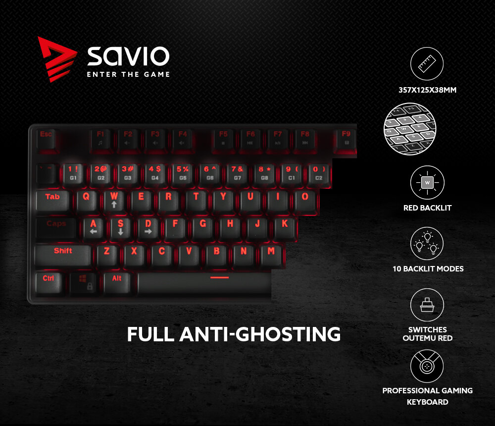 Klawiatura SAVIO Tempest RX TKL Outemu Red