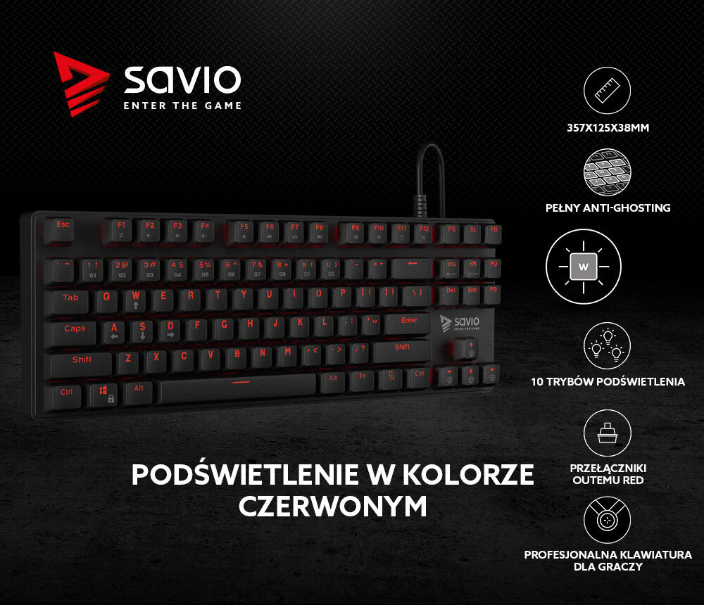 - Klawiatura SAVIO Tempest RX TKL Outemu Red