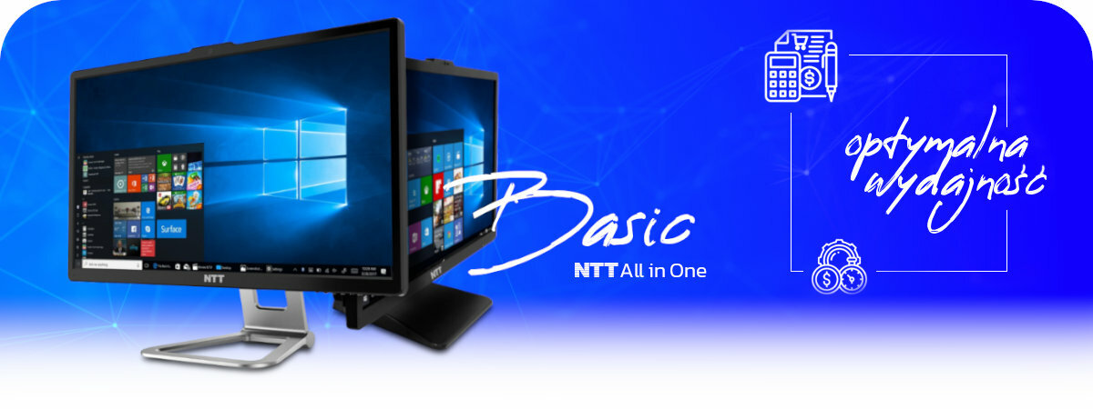 Poza preinstalowanym w każdym komputerze portem sieciowym do obsługi internetu „po kablu”, komputery biurowe NTT z serii All in One posiadają także moduł łączności bezprzewodowej Wi-Fi. Wysoka przepustowość zainstalowanej karty sieciowej Wi-Fi gwarantuje stabilne i szybkie połączenie z Twoją siecią w firmie lub w domu. Każda obsługa aplikacji wymagających połączenia z internetem będzie się teraz odbywać bez żadnych zacięć.
