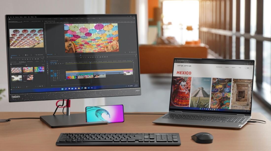 Ze wspaniałym wyświetlaczem FHD (1920 x 1080 px) o przekątnej 23,8 cala, który może poszczycić się ogromnym stosunkiem ekranu do obudowy i panelami niemal bez obramowania, komputer ThinkCentre Neo 50a All-in-One zapewnia imponujący obraz o wysokiej jakości. Dzięki dużym współczynnikom proporcji 16:9 i szerokim kątom widzenia, doświadczysz wyjątkowej klarowności i szczegółowości obrazu. Dodatkowo wyposażony w najwyższej klasy głośniki Harman, ThinkCentre Neo 50a wyróżni się doskonałym dźwiękiem, sprawiając, że każde miejsce pracy stanie się jeszcze bardziej atrakcyjne i efektywne.