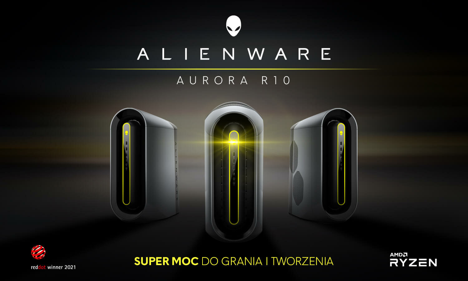 Aurora R10 Ryzen Edition to wyjątkowa stacjonarka kultowej marki Alienware, która zapewni Ci potężną, inteligentną wydajność gamingową dzięki nowym procesorom AMD Ryzen z serii 5000 o maksymalnie 16 rdzeniach, 32 wątkach i 72MB całkowitej pamięci podręcznej. Komputer ten będzie doskonałym rozwiązaniem dla graczy transmitujących swoje rozgrywki na żywo.