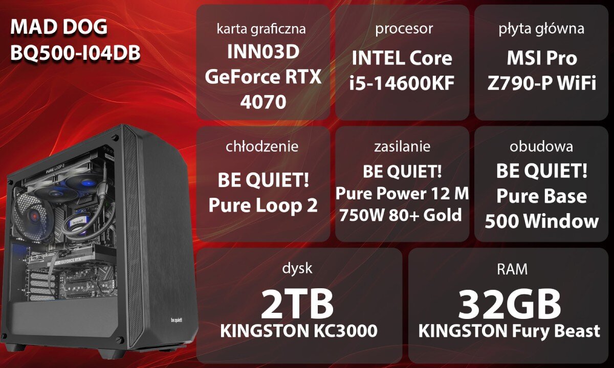 Komputer MAD DOG GeForce RTX4070 CS2 Reflex Edition BQ500-I04DB i5-14600KF 32GB RAM 2TB SSD Wi-Fi