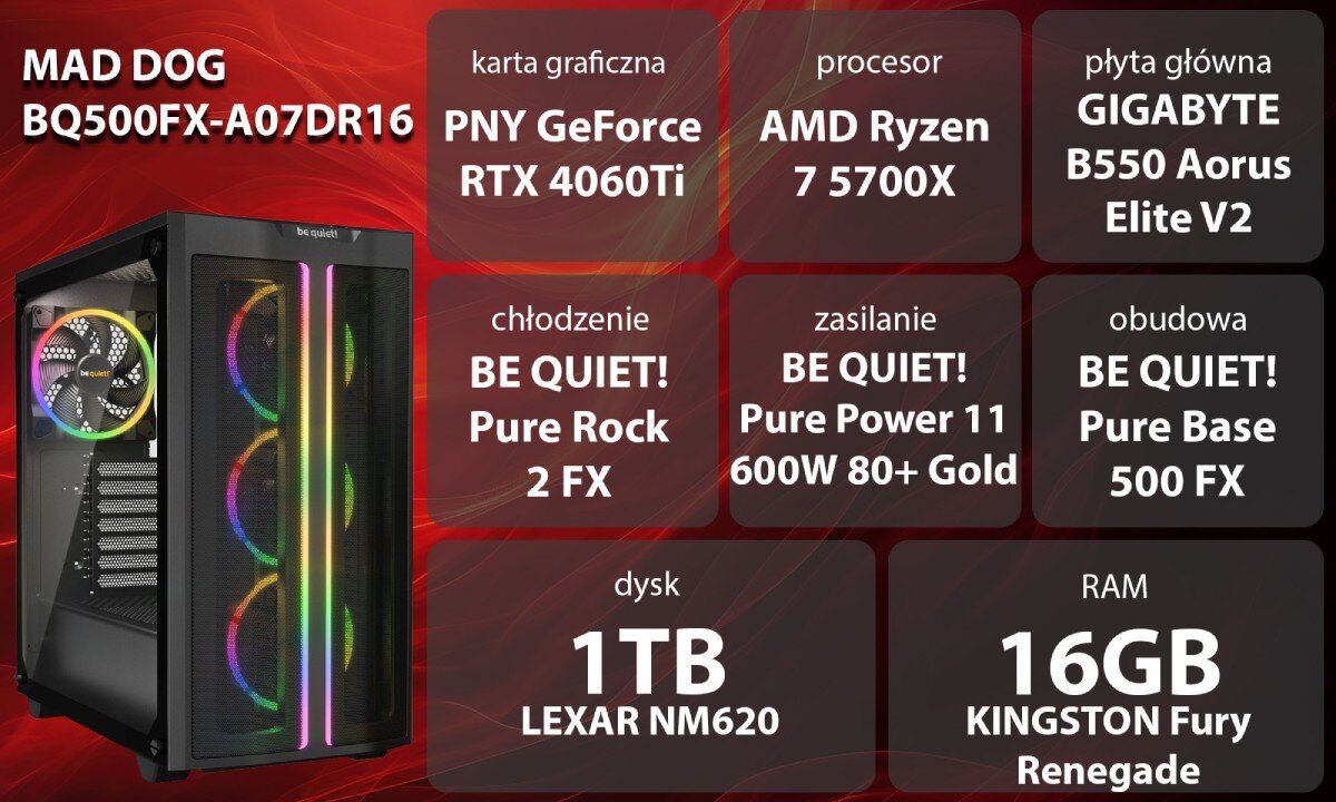 - Komputer MAD DOG BQ500FX-A07DR16 R7-5700X 16GB RAM 1TB SSD GeForce RTX4060Ti/16 DLSS 3
