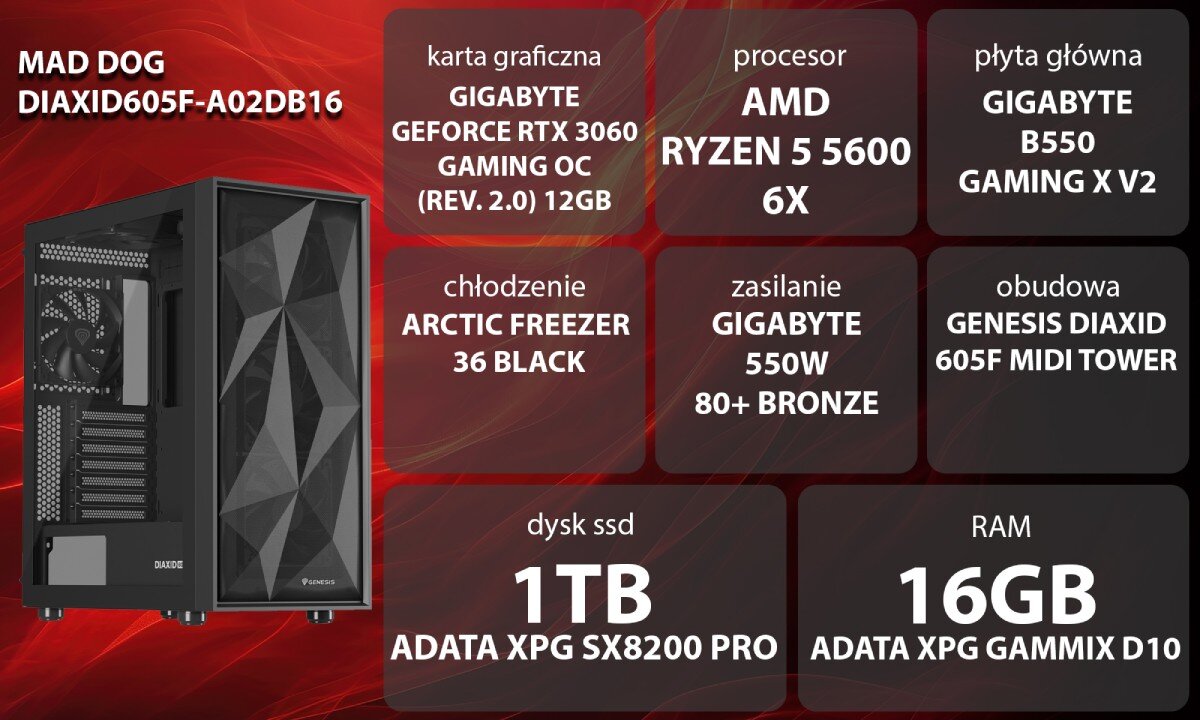 - Komputer MAD DOG DIAXID605F-A02DB16 R5-5600 16GB RAM 1TB SSD GeForce RTX3060