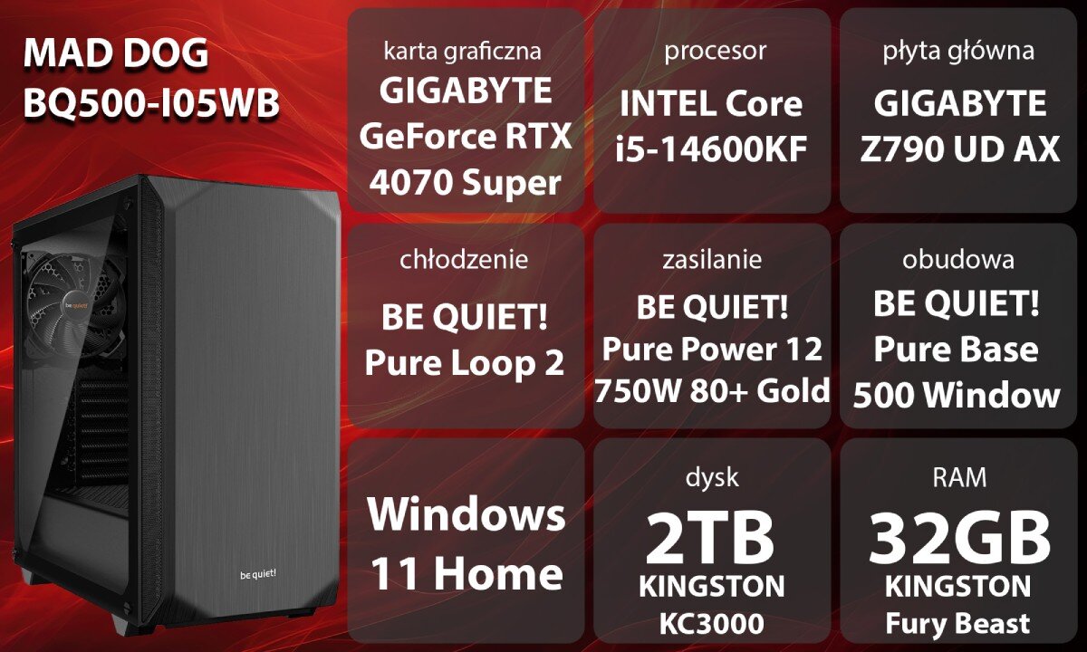 - Komputer MAD DOG GeForce RTX 4070 Super CS2 Reflex Edition BQ500-I05WB i5-14600KF 32GB RAM 2TB SSD Wi-Fi Windows 11 Home