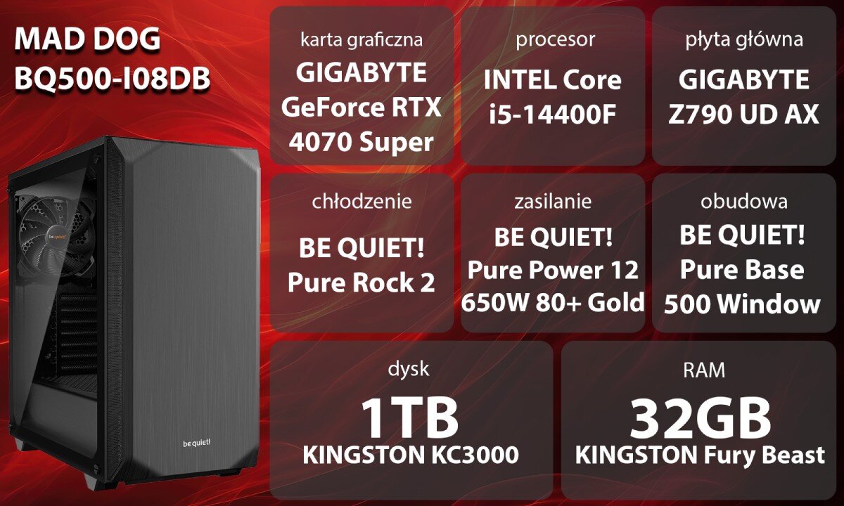 - Komputer MAD DOG GeForce RTX 4070 DLSS 3 Super CS2 Reflex Edition BQ500-I08DB i5-14400F 32GB RAM 1TB SSD Wi-Fi