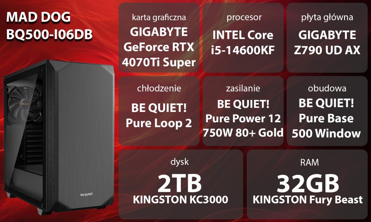 - Komputer MAD DOG GeForce RTX 4070Ti Super CS2 Reflex Edition BQ500-I06DB i5-14600KF 32GB RAM 2TB SSD Wi-Fi