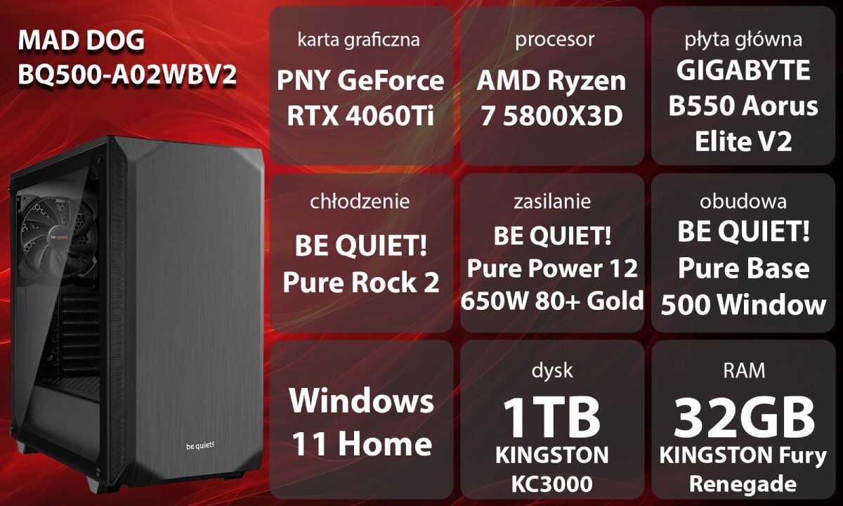 - Komputer MAD DOG GeForce RTX4060Ti/16 CS2 Reflex Edition BQ500-A02WBV2 R7-5800X3D 32GB RAM 1TB SSD Windows 11 Home