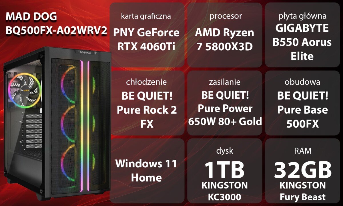 - Komputer MAD DOG GeForce RTX4060Ti CS2 Reflex Edition BQ500FX-A02WRV2 R7-5800X3D 32GB RAM 1TB SSD Windows 11 Home