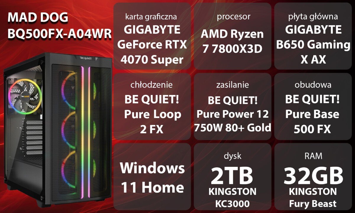- Komputer MAD DOG GeForce RTX4070 Super CS2 Reflex Edition BQ500FX-A04WR R7-7800X3D 32GB RAM 2TB SSD Wi-Fi Windows 11 Home