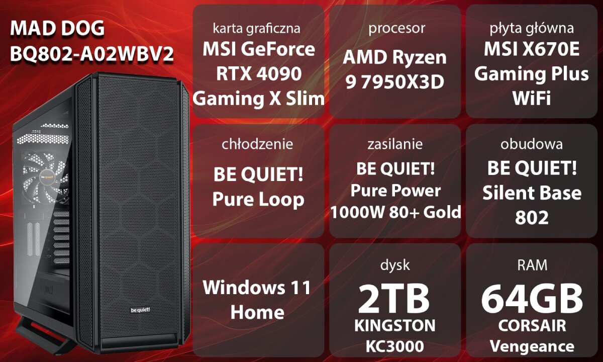 - Komputer MAD DOG GeForce RTX4090 CS2 Reflex Edition BQ802-A02WBV2 R9-7950X3D 64GB RAM 2TB SSD Wi-Fi Windows 11 Home