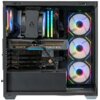 Przestronna, efektowna i dopracowana w każdym detalu – obudowa KRUX Exo sprawia, że komputer wygląda imponująco i działa bez przeszkód. Hartowane szkło na froncie i boku nadaje konstrukcji stylu i pozwala wyeksponować komponenty oraz podświetlenie. W środku czeka zestaw czterech wentylatorów ARGB 120 mm, które nie tylko dbają o odpowiednią cyrkulację powietrza, ale też dodają gamingowego klimatu. Układ portów, w tym szybkie USB Type-C, dwa USB-A 2.0 oraz wejście i wyjście audio, daje wygodny sposób na podłączanie akcesoriów.