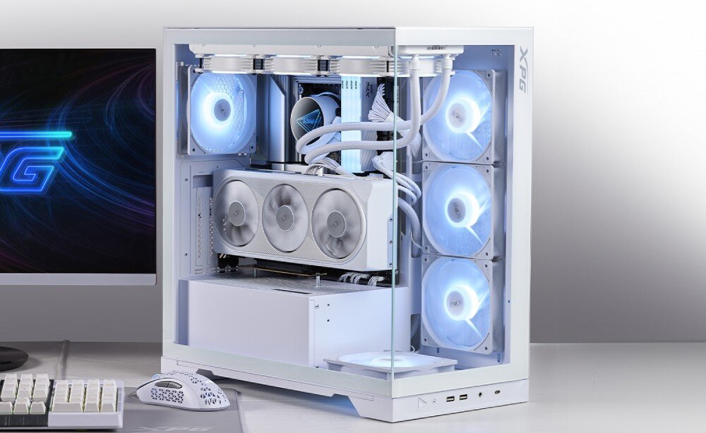 MAD DOG INVADER-XW-I01DR32 imponuje też wyglądem, za który odpowiada obudowa ADATA XPG Invader X w kolorze białym. Dzięki przedniemu i bocznemu panelowi wykonanemu ze szkła hartowanego możesz podziwiać komponenty. Obudowa zapewnia także praktyczne rozwiązania, takie jak magnetyczne filtry przeciwpyłowe, który ułatwiają utrzymanie czystości, oraz 5 wentylatorów pomagające zachować odpowiednią wentylację. Ponadto panel przedni zapewnia łatwy dostęp do dwóch portów USB-A 3.0, jednego USB-C 3.0, a także wyjścia audio, dzięki którym szybko podłączysz potrzebne akcesoria.