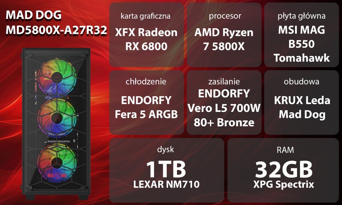 - Komputer MAD DOG MD5800X-A27R32 R7-5800X 32GB RAM 1TB SSD Radeon RX6800