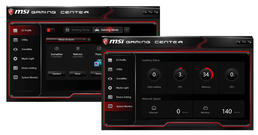| Aplikacja Gaming Center Jest to łatwy w obsłudze program, dzięki któremu można zmodyfikować większość parametrów systemowych i w ten sposób zapewnić sobie jeszcze lepsze wrażenia w grach. |