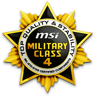 Komponenty 4. klasy militarnej (Military Class 4) Wykorzystana do budowy komputera płyta główna MSI wyposażona została w podzespoły spełniające kryteria przyjęte dla komponentów 4. klasy militarnej zapewniając tym samym sprawne działanie dzięki swojej doskonałej stabilność, energooszczędności i wydajności.