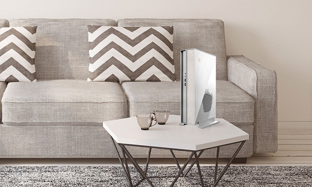 Stylowa, obudowa komputera wygląda niezwykle nowocześnie. Podstawka stabilizująca obudowę zapewnia zabezpieczenie przed uszkodzeniem, jest także ciekawym elementem wizualnym. Idealnie wkomponuje się w każde urządzone w nowoczesny sposób wnętrze, stanowiąc jego dopełnienie. Komputer posiada nadrukowane logo marki MSI, co jeszcze bardziej dodaje mu klasy i designu.