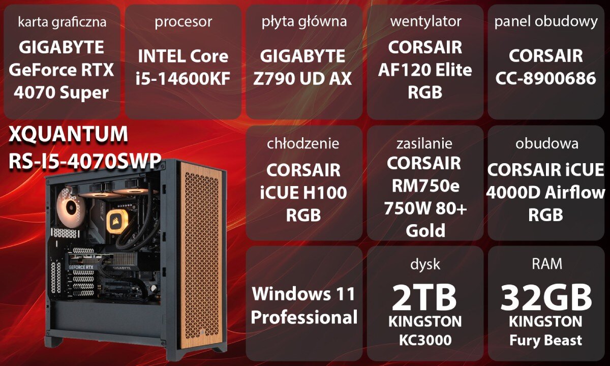 - Komputer XQUANTUM Creator GeForce RTX Studio RS-I5-4070SWP i5-14600KF 32GB RAM 2TB SSD GeForce RTX4070 Super Wi-Fi Windows 11 Professional
