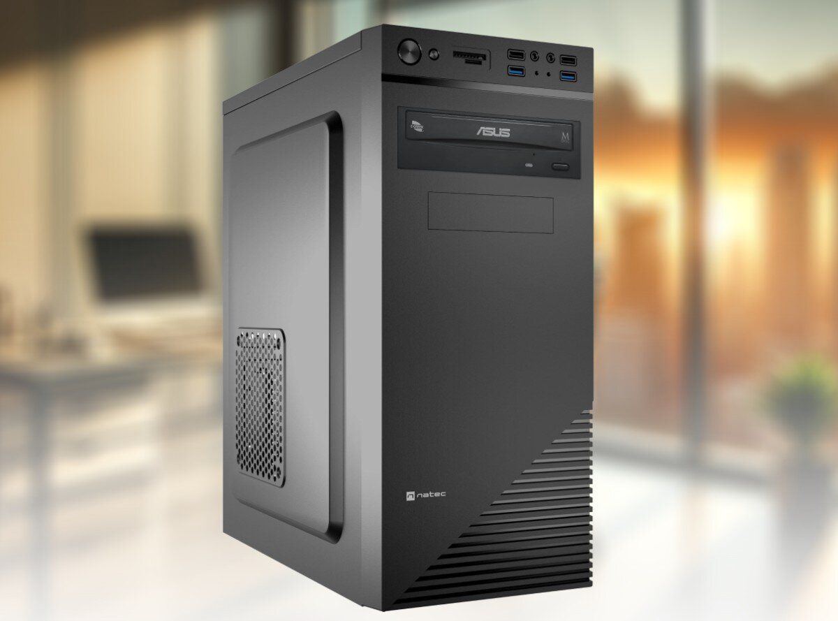 NATEC Cabassu G2 to obudowa, w której zainstalowano wszystkie podzespoły komputera XQUANTUM XQI3R8S500-XI11W11P. Dzięki prostym kształtom i czarnemu kolorowi, idealnie dopasowuje się do większości stanowisk. Cztery porty USB-A na przednim panelu, w tym dwa w standardzie 3.0 dla szybkiego transferu danych, oraz czytnik kart SD i microSD zapewniają łatwy dostęp do urządzeń i wygodne przesyłanie plików. Zainstalowany 80-milimetrowy wentylator na tylnym panelu dba o optymalną wentylację i stabilną pracę systemu.