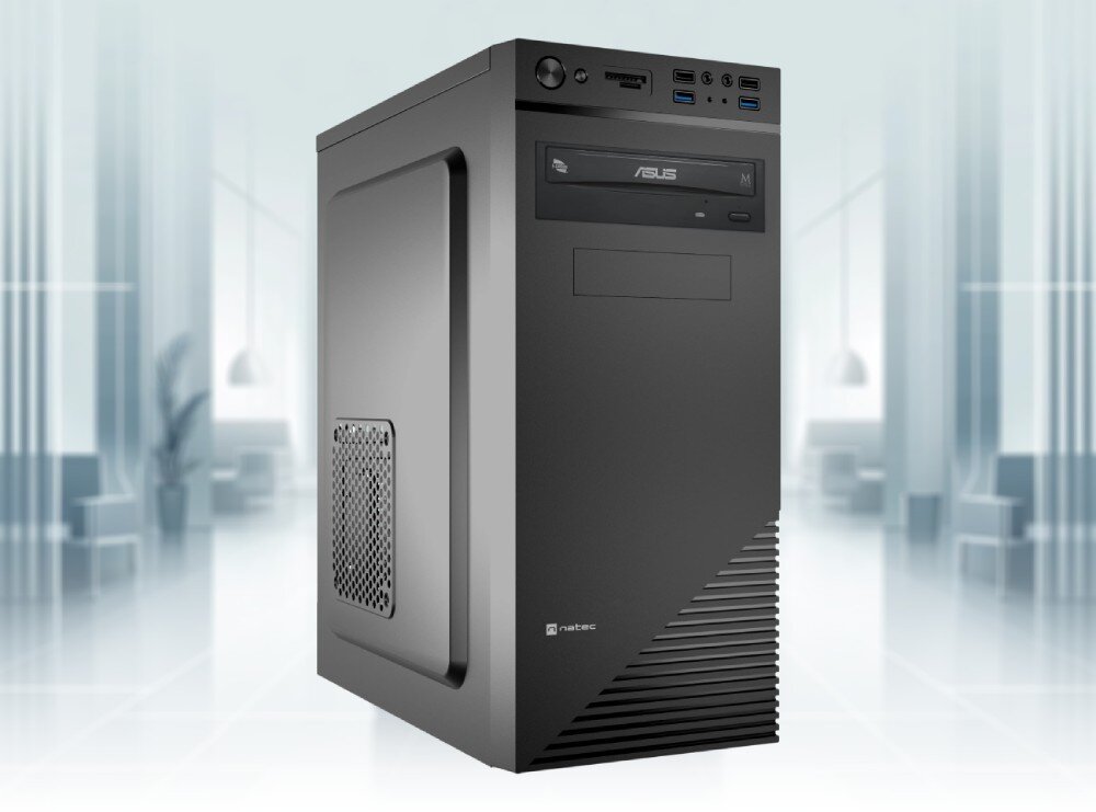 Wszystkie podzespoły komputera XQUANTUM XQR5R16S500-XA15D zamontowano w obudowie NATEC Cabassu G2, która nie tylko dobrze wygląda, ale również oferuje przestrzeń na rozbudowę. Jej konstrukcja zapewnia dobry przepływ powietrza, wsparty przez 80-milimetrowy wentylator, co jest ważne dla utrzymania optymalnych temperatur podczas pracy komputera. Na przodzie obudowy znajdziesz 4 porty USB-A w tym 2 w wersji 3.0, które pozwolą podłączyć dysk zewnętrzny, czy też myszkę bez potrzeby sięgania na tył komputera, a czytnik kart SD i microSD zapewnia wygodne przesyłanie plików.