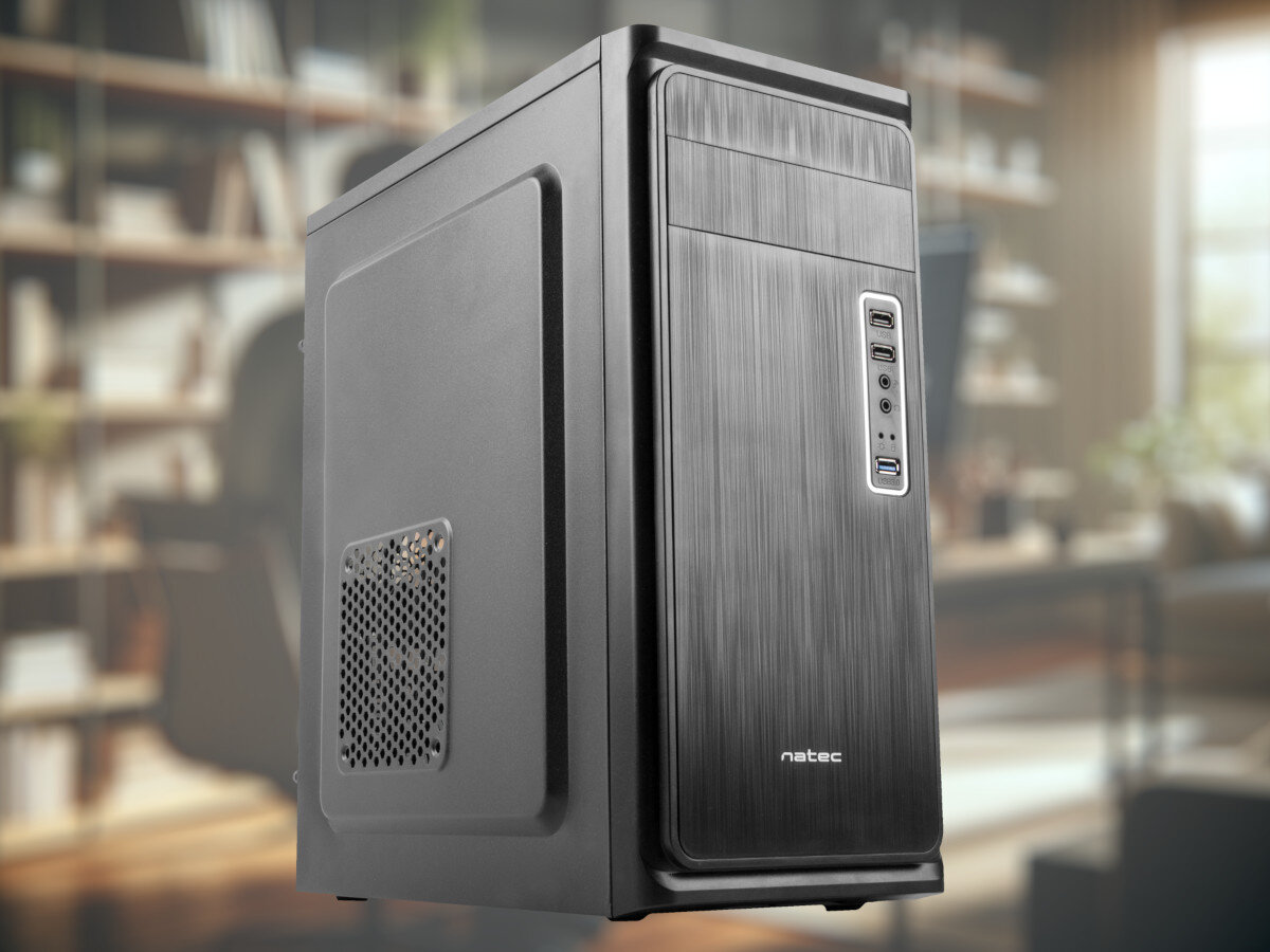 Komputer XQUANTUM XQR5R8S500-XA5 zamknięto w obudowie NATEC Armadillo, wykonanej z metalu i tworzywa ABS. To nie tylko zapewnia ochronę komponentom, ale także dodaje estetyki. Dostępne porty na przednim panelu, w tym 3 złącza USB-A i 2 gniazda mini Jack, ułatwiają podłączanie dodatkowych akcesoriów, a dzięki odpowiedniej wentylacji i przestronności wnętrza, podzespoły pracują w odpowiedniej temperaturze.