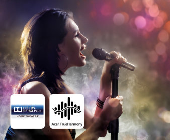 Niezwykłe połączenie technologii Dolby® Digital Plus Home Theater™ i Acer TrueHarmony tworzy wyjątkową głębie dźwięku, który porwie Cię już od pierwszej chwili. Acer TrueHarmony pozwala na znaczne rozszerzenie pasma niskich tonów i doskonale podnosi poziom dźwięku, podczas gdy technologia Dolby® Digital Plus Home Theater™ gwarantuje kinową jakość dźwięku, którą można cieszyć się w każdym miejscu, o każdej porze.