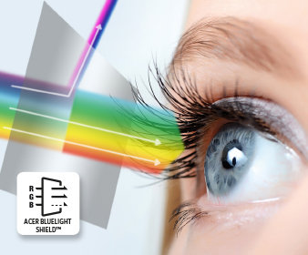 Chroń swoje oczy przed szkodliwym światłem niebieskim z technologią Acer BluelightShield™. Cztery tryby obniżenia emisji niebieskiego światła i redukcji jego negatywnych skutków, takich jak zmęczenie oczu i bezsenność, doskonale sprawdzają się przy długotrwałej pracy lub zabawie z urządzeniem.