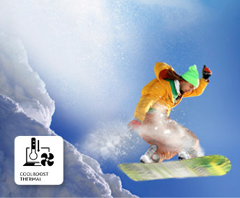 Tryb Turbo systemu CoolBoost umożliwia zwiększenie prędkości wentylatora i siły chłodzenia Ta innowacyjna funkcja umożliwia ręczne sterowanie obiegiem powietrza i zwiększenie siły chłodzenia przy wytężonej pracy sprzętu. Zmniejsz temperaturę CPU/GPU o 11%, zwiększając prędkość wentylatora o 19%.