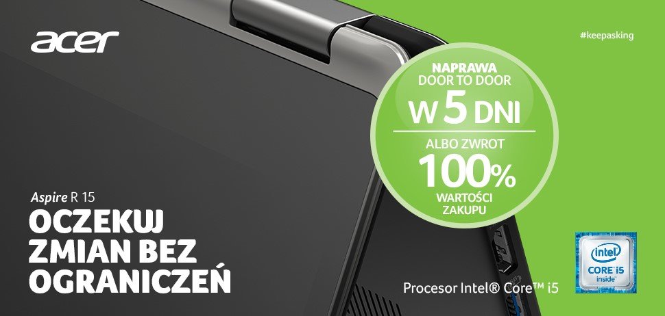 ciepła, co sprawia, że laptop Aspire R 15 jest chłodny w dotyku, a jego