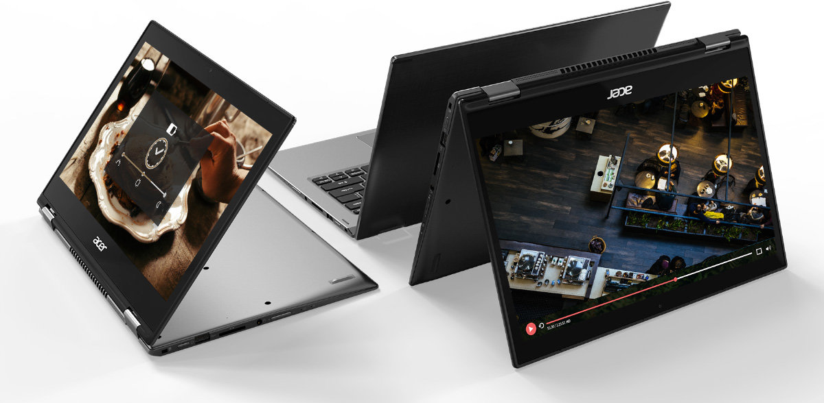 Zawias 360° firmy Acer doskonale wpisuje się w smukłą i wytrzymałą konstrukcję modelu Spin 5, zapewniając cztery tryby pracy.
