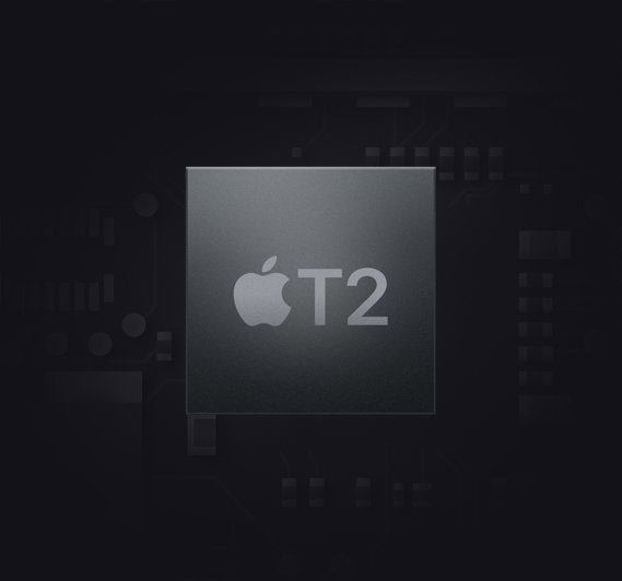 Przedstawiamy Apple T2 – zaprojektowany przez Apple specjalnie dla komputerów Mac układ zabezpieczający drugiej generacji. W 13- i 15-calowych MacBookach Pro z paskiem Touch Bar układ Apple T2 zawiera koprocesor Secure Enclave, który jest fundamentem bezpiecznego uruchamiania systemu i szyfrowania pamięci masowej. Jeden czip Apple T2 zastępuje także szereg odrębnych kontrolerów, w tym dotychczasowy układ SMC (System Management Controller), kontroler audio i kontroler pamięci masowej SSD.