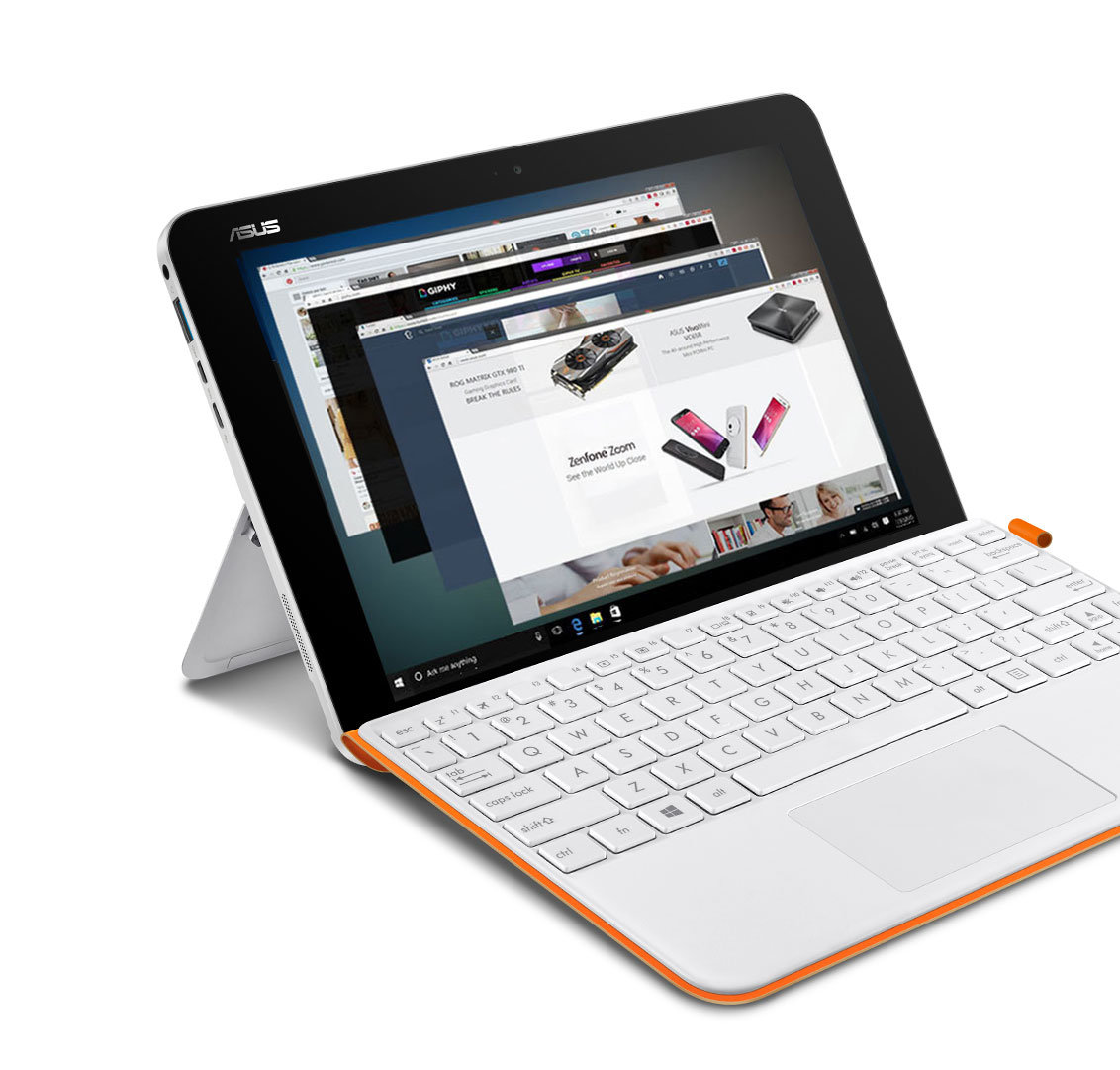 Transformer Mini T102HA wspiera wszystkie nowe, wspaniałe funkcje Windows 10. Tryb Continuum automatycznie optymalizuje Windowsa do użytkowania tabletu lub laptopa, a Windows Hello, dzięki czytnikowi linii papilarnych, pozwala na zalogowanie się do systemu jedynym dotknięciem palca. Niezwykle precyzyjny touchpad powoduje, że wprowadzanie dotykowe jest bardzo dokładne, a Asus Pen jest doskonały do rysowania czy pisania ręcznego. Transformer Mini oferuje Ci pełnię możliwości systemu Windows – w jednym niesamowitym urządzeniu!
