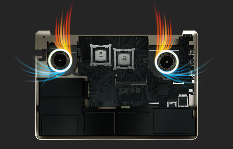 VivoBook Pro 15 wykorzystuje inteligentny system chłodzenia w celu zapewnienia płynnego i stabilnego działania podczas przetwarzania wielu procesów jednocześnie lub maratonów rozgrywkowych. Inteligentny projekt podwójnych wiatraków zapewnia osiem automatycznie ustawianych prędkości, aby zagwarantować maksymalne efekty chłodzenia przy minimalnym poziomie hałasu. Kompaktowy, hiperchłodny, dwuwentylatorowy moduł termalny wykorzystuje rurki cieplne i wiatraki, aby niezależnie zwiększać wydajność procesora i karty graficznej.