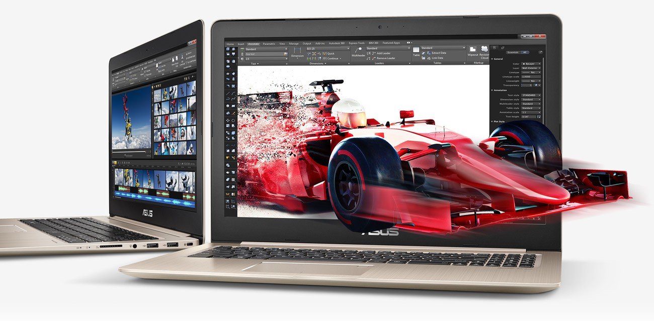 ASUS VivoBook Pro 15 to smukły i lekki laptop o wysokiej wydajności z procesorem Intel® Core™ 7. generacji. Wyposażony jest w wyświetlacz ze 100% paletą kolorów sRGB, wysokiej jakości kartę graficzną NVIDIA® GeForce® GTX 1050 oraz system audio stworzony wspólnie z ekspertami z firmy Harman Kardon, jak również najnowsze technologie chłodzenia oraz szybkiego ładowania.