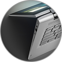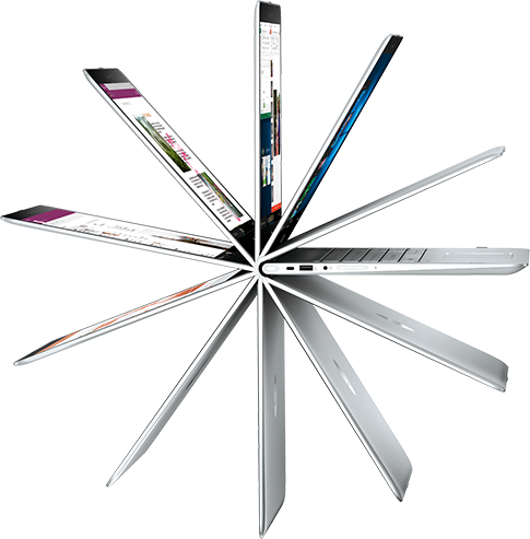Cienka, całkowicie metalowa konstrukcja i zawias 360º zapewniają cztery tryby pracy. Łatwe przejście z wydajnej pracy do oglądania multimediów w zachwycającej jakości.