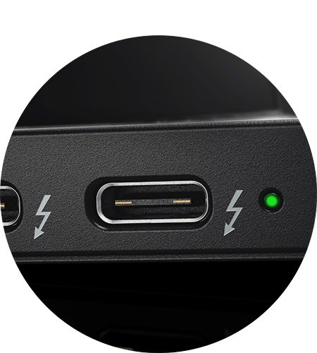X1 Carbon zawiera technologię Intel® Thunderbolt™ 3, która umożliwia błyskawiczny transfer danych za pośrednictwem złącza USB-C z szybkością do 40 Gb/s. Po podłączeniu kabla z gniazda USB-C do urządzenia z technologią Thunderbolt 3 można uzyskać czterokrotnie szybszą transmisję danych i dwukrotnie większą przepustowość sygnału wideo niż przy użyciu jakiegokolwiek innego gniazda. Jednocześnie można też zasilać drugie urządzenie. Użytkownicy tego modelu mają więc do dyspozycji interfejsy Thunderbolt, USB-C i DisplayPort. Za pośrednictwem stacji dokującej Thunderbolt Dock można też podłączyć dwa monitory o rozdzielczości 4K.