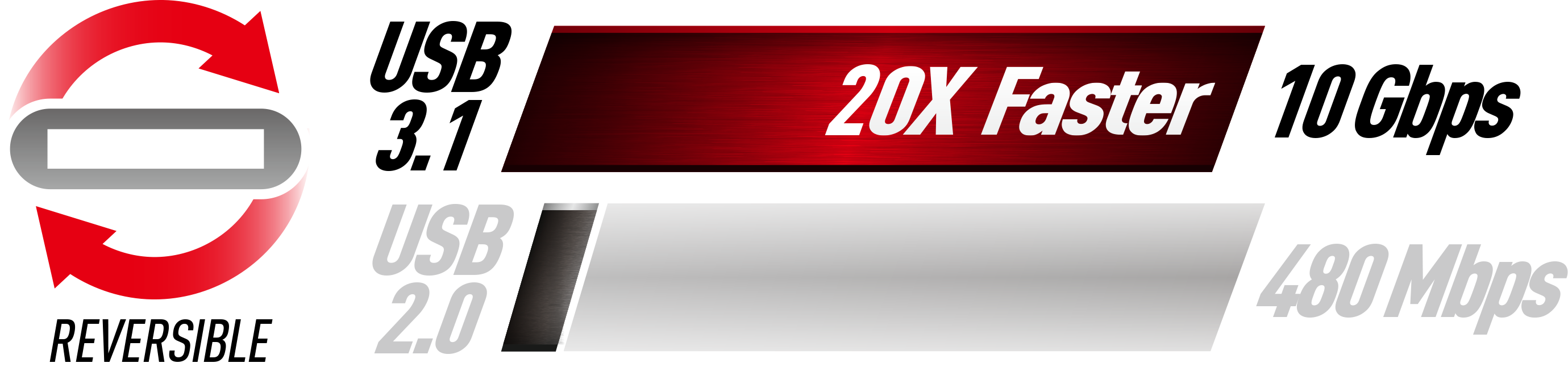 USB 3.0 TYPE-C Transfer w trybie SuperSpeed pozwala przesyłać dane z szybkością dochodzącą do 5 Gb/s, czyli około 10 razy szybciej niż w wypadku USB 2.0. Złącze Type-C jest znacznie mniejsze niż w wypadku starego typu portów USB Type-A. Co ważne, symetryczna, odwracalna konstrukcja wtyczki Type-C sprawia, że podłącznie urządzeń jest łatwiejsze, a sama wtyczka znacznie bardziej wygodna w użyciu. Istotne jest również to, że standard USB 3.0 jest wstecznie kompatybilny z jego poprzednią odsłoną USB.2.0. |