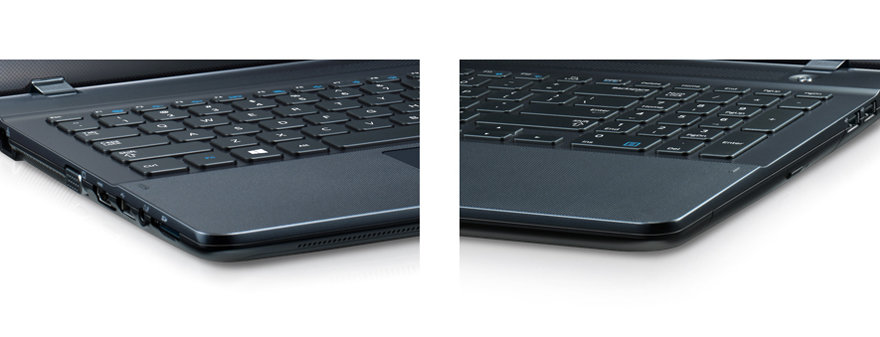 Pełnowymiarowa klawiatura wyspowa z klawiszami numerycznymi, wykonana z materiałów wysokiej jakości, ułatwia pisanie, maksymalizując komfort i zapewniając czystość. Klawiatura ma ergonomiczny kształt i rewelacyjnie zaprojektowane klawisze umieszczone w optymalnej odległości od siebie. Zoptymalizowany pod kątem systemu Windows 8 panel dotykowy zapewnia błyskawiczny dostęp do najważniejszych funkcji, takich jak pasek zadań/przełącznik ekranu, pasek aplikacji oraz wysuwany pasek boczny – wystarczy przesunąć palcem po ekranie.