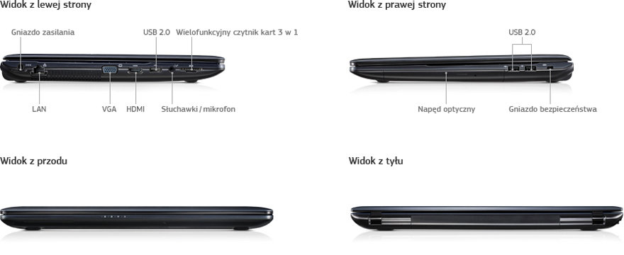 Oszczędzaj czas i szybko wymieniaj dane z urządzeniami zewnętrznymi za pomocą portów USB 2.0 i LAN oraz czytnika kart typu „3 w 1”. Ponadto porty HDMI i VGA umożliwiają łatwe podłączenie nowoczesnego telewizora lub dużego monitora, dzięki czemu będziesz oglądać filmy i zdjęcia na znacznie większym ekranie.