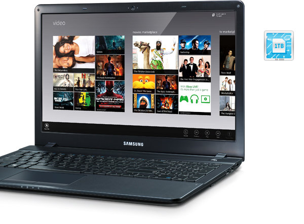 Ciesz się ulubioną muzyką, zdjęciami i filmami kiedykolwiek i gdziekolwiek zechcesz dzięki ultrapojemnemu dyskowi, który pomieści nawet 1 TB danych. W odróżnieniu od innych cienkich notebooków Samsung ATIV Book 2 zapewnia ogromną ilość miejsca na przechowywane pliki. Teraz posiadanie ultraprzenośnego notebooka nie musi oznaczać kompromisu w zakresie możliwości przechowywania danych.