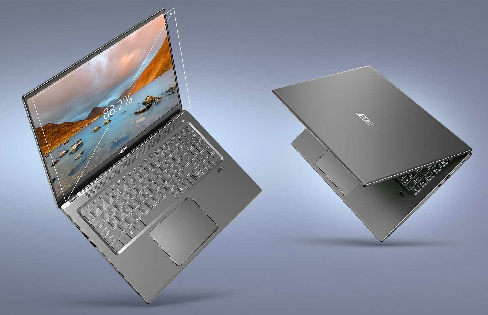 Wbudowany czytnik linii papilarnych dba o bezpieczeństwo urządzenia. Z kolei system DTS Audio, technologia Acer TrueHarmony i wspomagane sztuczną inteligencją tłumienie szumów to zestaw inteligentnych rozwiązań poprawiających jakość dźwięku.