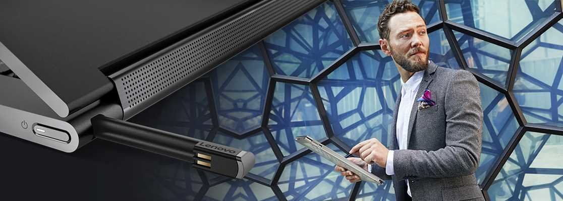 Klienci opowiadali nam, jak kłopotliwe jest pilnowanie pióra cyfrowego. Na laptopie Yoga C930 możesz uwieczniać swoje myśli na bieżąco piórem cyfrowym chowanym w specjalnej komorze w obudowie. Co więcej, schowane w niej pióro doładowuje baterię.