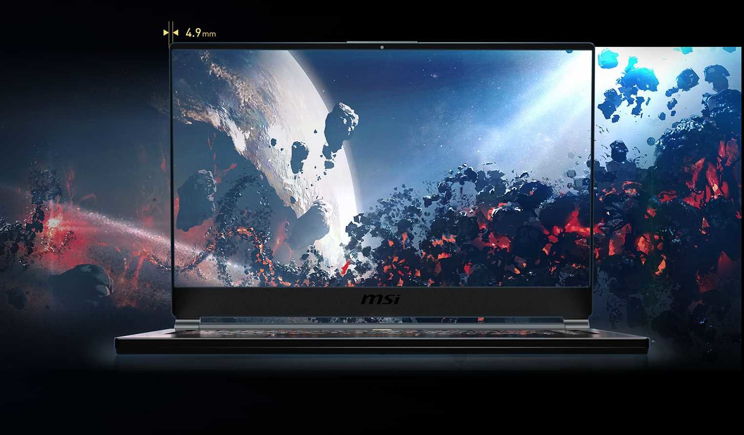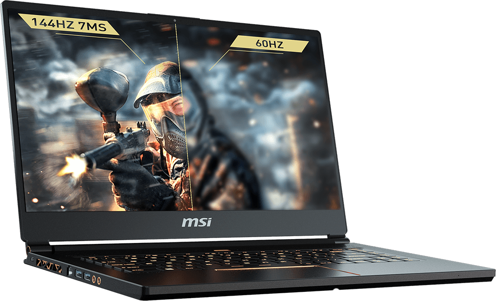 GS65 Stealth Thin - przenośny 15,6-calowy laptop z cienkimi ramkami i nowoczesnym złotym i czarnym wykończeniem. Ostre, mocne, szczupłe - wszystko w jedno.