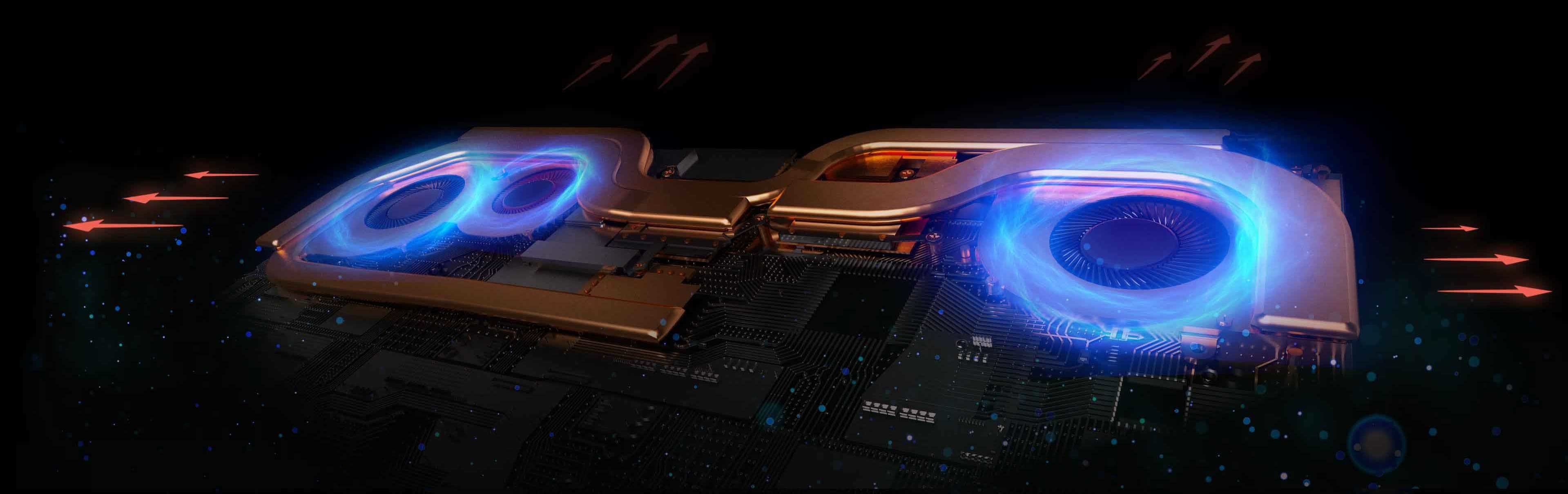 Ciepło, to jedna z podstawowych form energii występujących w przyrodzie. Zgodnie z prawami fizyki, im więcej dane urządzenie zużywa energii, tym więcej wydziela ono ciepła. Dlatego skonstruowanie odpowiedniego systemu chłodzenia, jest skomplikowanym, aczkolwiek koniecznym do realizacji zadaniem. System chłodzenia Cooler Boost Trinity, to system składający się z trzech usprawnionych pod względem konstrukcyjnym wentylatorów Whirlwind Blade, w których liczbę łopatek podniesiono do 41. Dzięki temu zwiększony został przepływ tłoczonego powietrza o 30%, przy jednoczesnym zachowaniu prędkości obrotowej wentylatora. Niezależny system chłodzenia, zarówno dla procesora, jak i układu graficznego, wykorzystujący łącznie 5 ciepłowodów, gwarantuje, że ciepło nie gromadzi się ani na procesorze, ani na chipie graficznym, dzięki czemu oba układy mogą pracować z pełną wydajnością nawet w najbardziej wymagających grach.
