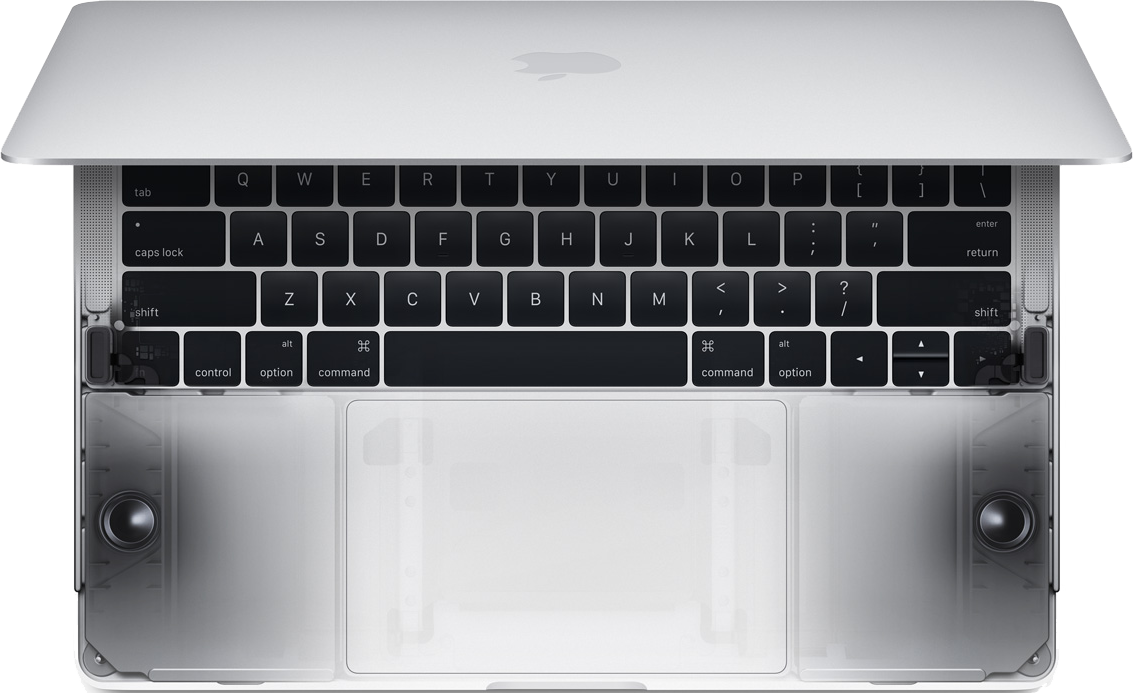 | Interakcje z nowym MacBookiem Pro są doskonalsze pod każdym względem. Przeprojektowana klawiatura wykorzystuje nowy mechanizm motylkowy drugiej generacji, starannie dopracowany, tak by klawisze były bardziej responsywne, a pisanie – komfortowe. Z kolei powiększony gładzik Force Touch daje Ci więcej miejsca na gesty i pozwala wygodniej klikać. | ![]() |
