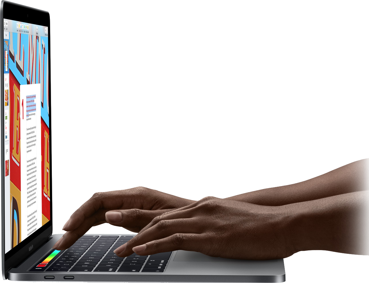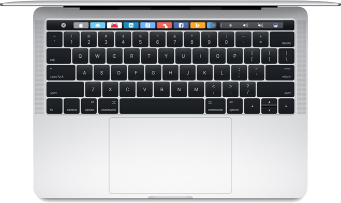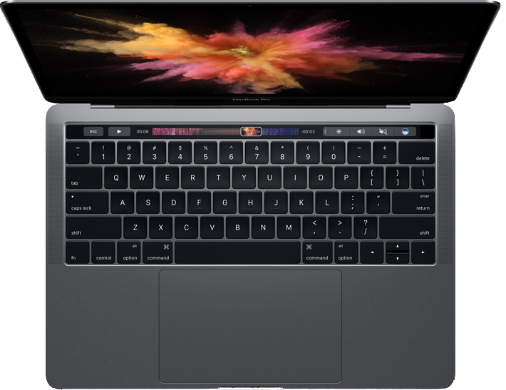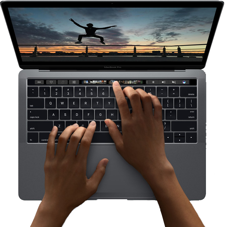 Touch Bar wyświetla najważniejsze narzędzia na klawiaturze. Śledzi, co robisz, i automatycznie dostosowuje się do Twoich działań, więc ze wszystkim uporasz się sprawniej niż kiedykolwiek. Od razu wiesz, jak go używać, bo pokazuje to, co już znasz. Jedno dotknięcie wystarczy, by użyć skrótów, emoji i innych funkcji. Ruchem palca przewiniesz film w trybie pełnoekranowym, a stukając, możesz przeglądać i edytować zdjęcia. Na Macu debiutuje też czytnik Touch ID, więc masz teraz natychmiastowy dostęp do loginów i wielu innych funkcji.