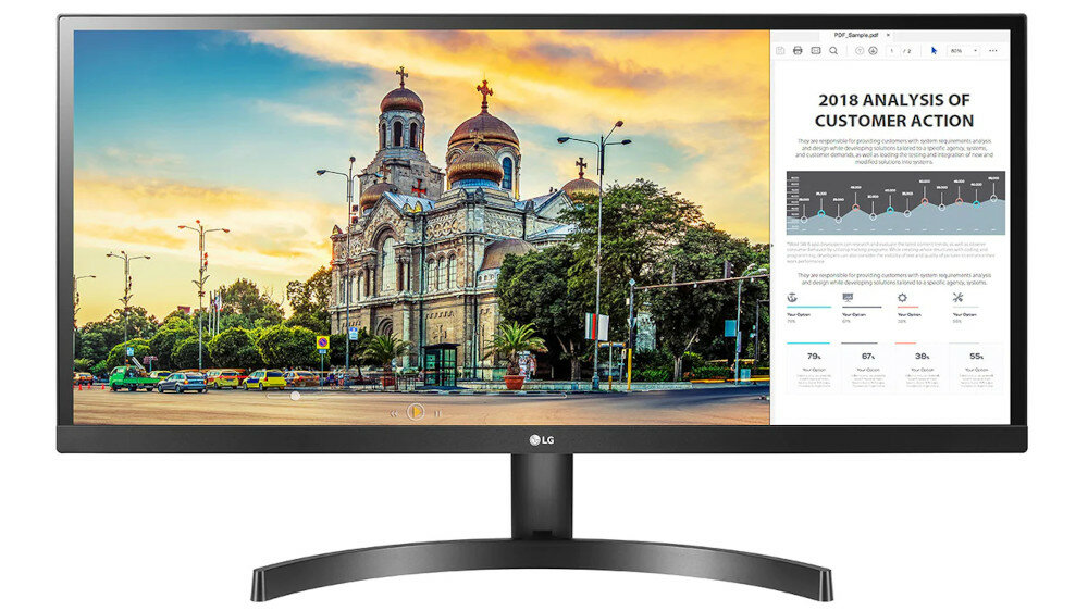 Monitor 21:9 UltraWide Full HD (2560 x 1080) zapewnia o 33% więcej przestrzeni roboczej w porównaniu z monitorami Full HD 16:9. Dzięki temu można komfortowo otworzyć więcej okien i pomieścić więcej ikon na ekranie.