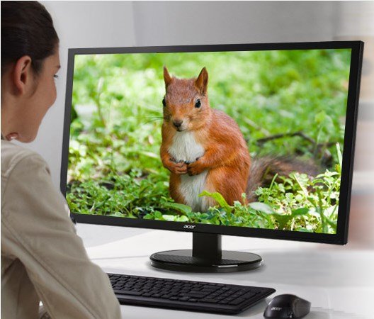 Niesamowita wydajność Dzięki dużej liczbie szczegółów gwarantowanych przez ekran o podświetlaniu LED i rozdzielczości Full HD zarówno praca, jak i rozrywka sprawiają niesamowitą przyjemność.1 Ponadto funkcja Acer Adaptive Contrast Management zapewnia jeszcze lepsze odwzorowanie barw. |