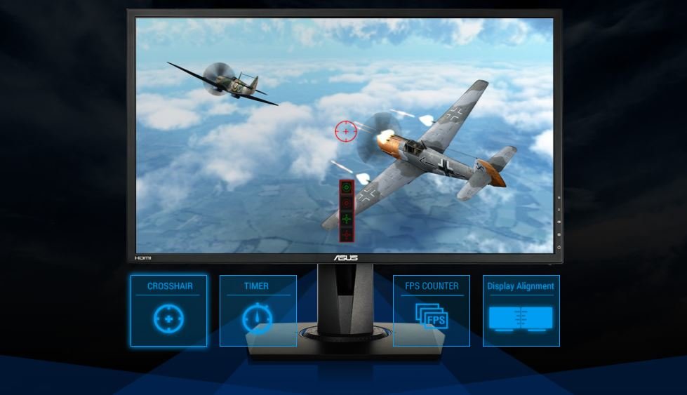ASUS VG245H wyposażony jest w skrót klawiszowy GamePlus (tylko w ASUS), który ulepszy Twoją grę i pozwoli Ci czerpać z niej więcej satysfakcji.