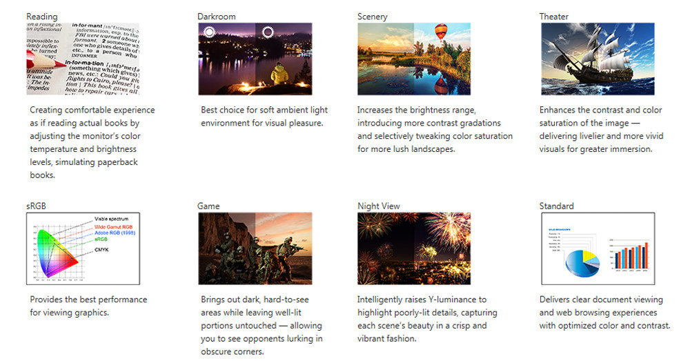 Podnieśliśmy poprzeczkę wprowadzając do ASUS VP229 kilka własnych, ekskluzywnych technologii, które zapewniają niezwykle wysoką jakość obrazu. ASUS VP229 wykorzystuje nową technologię SplendidPlus™ Video Intelligence, która optymalizuje obraz odpowiednio dostosowując kolory, jasność, kontrast i ostrość. SplendidPlus™ posiada dwa nowe tryby - Czytanie i Ciemnia - poza znanymi wcześniej trybami Sceneria, Standard, Kino, sRGB i Nocny widok. Technologie Low-blue Light i Flicker-free zmniejszają zmęczenie oczu przy długim korzystaniu z monitora.